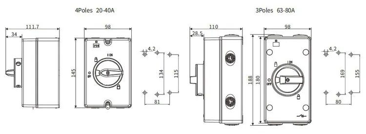 Interruptor isolado CA com caixa IP65 2P In:80A Red Handle |