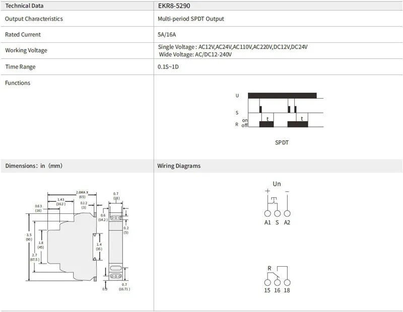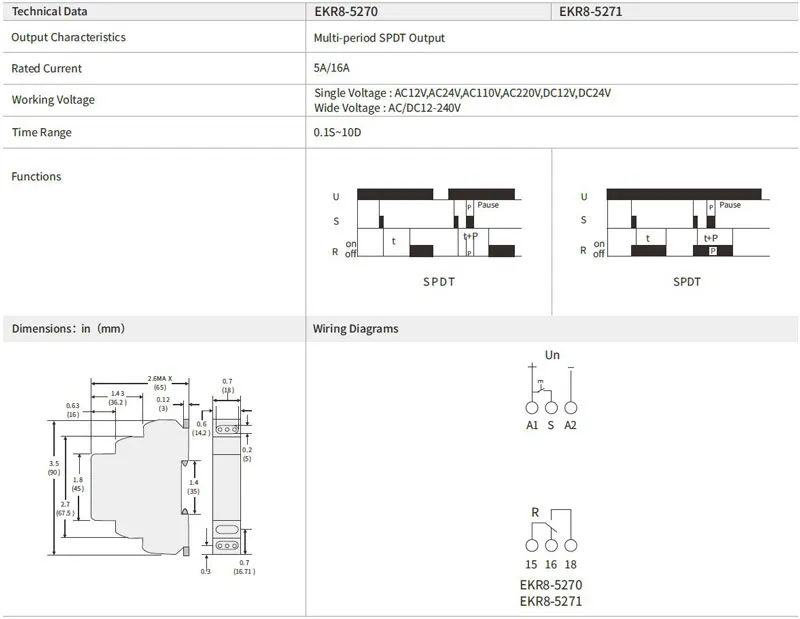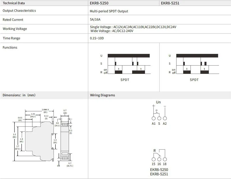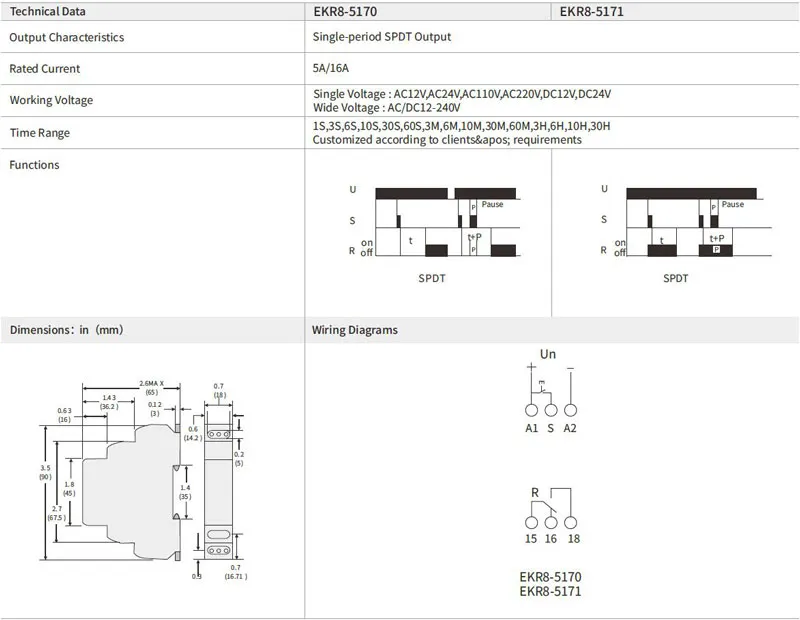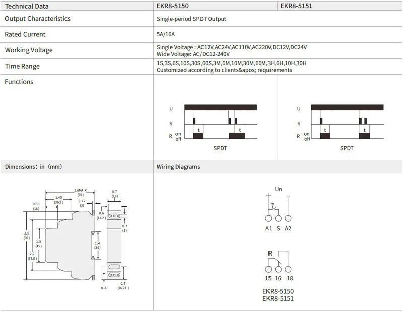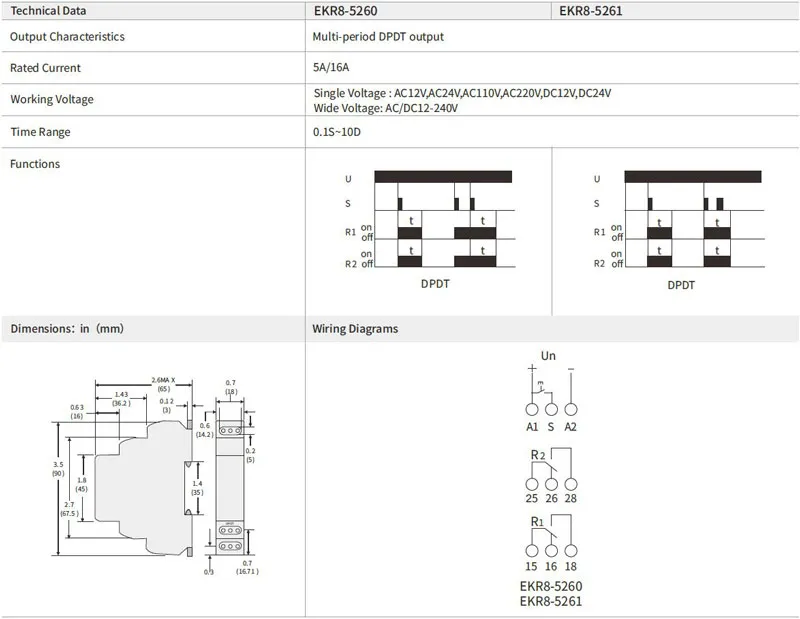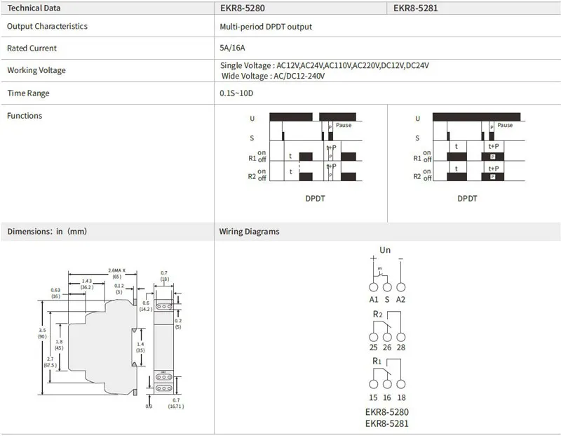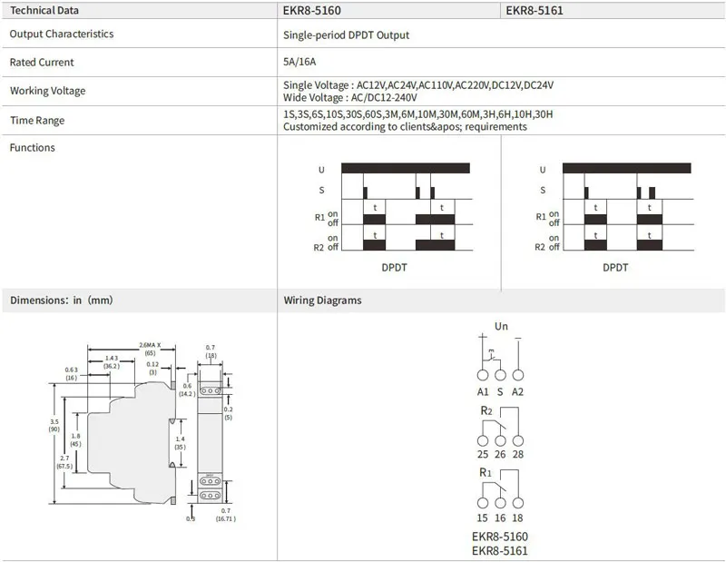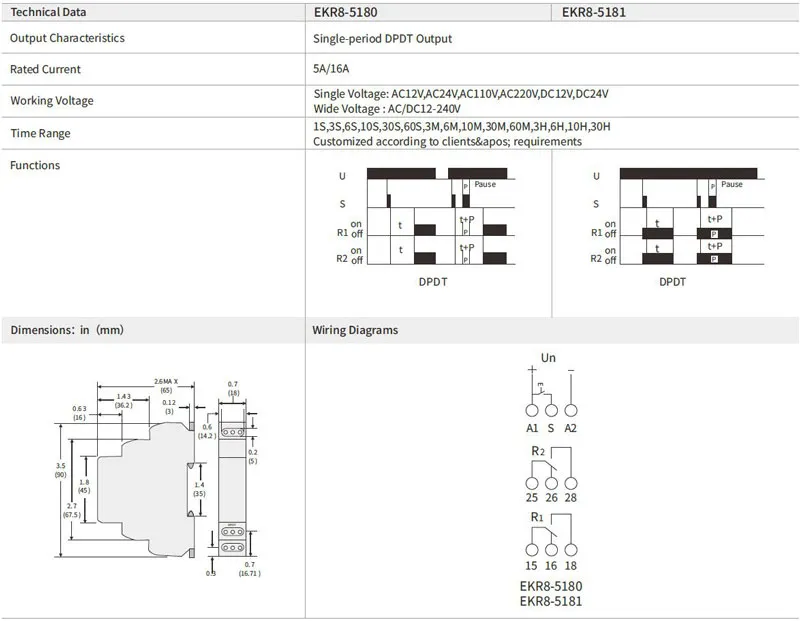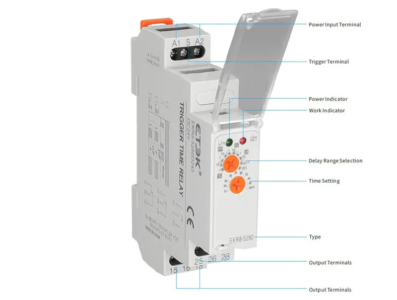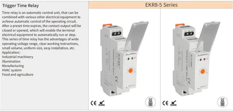 Relé de tempo de atraso SPDT/DPDT tipo trilho DIN série EKR8-5