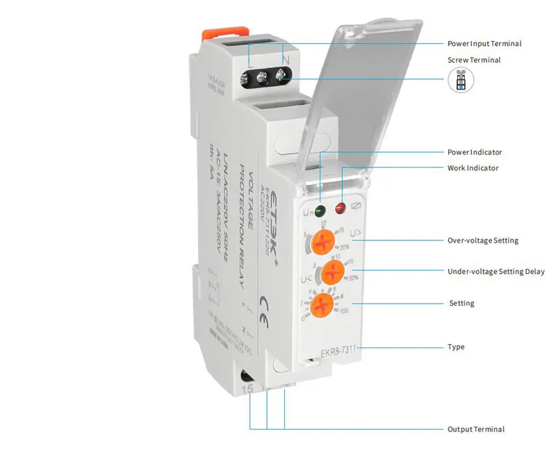 Os Relés de Monitoramento de Tensão Monofásicos são projetados para proteção de carga monofásica contra variações de tensão não permitidas na rede elétrica. Eles têm uma ampla gama de ajustes, incluindo atraso de tempo de energia para proteção de equipamentos de refrigeração, compressor e ar condicionado.