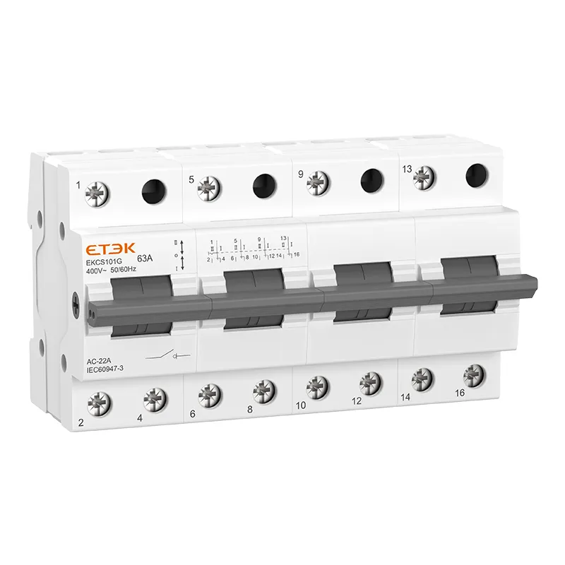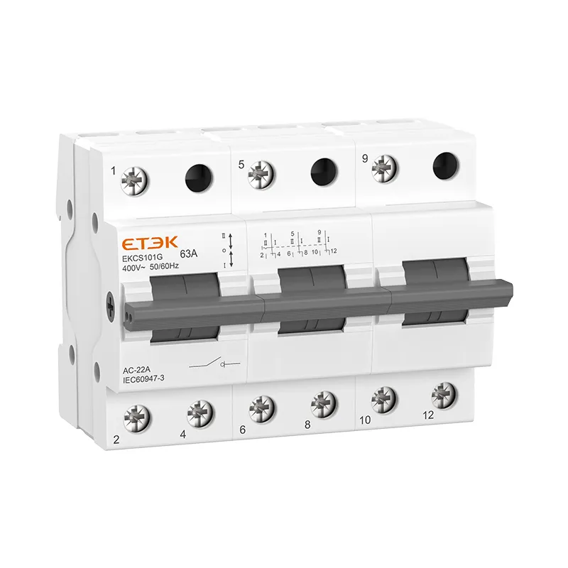 O interruptor de isolamento de conversão de energia dupla montado em trilho EKCS101G tem quatro funções de ligar, desligar, conversão e isolamento. Ele pode ser ligado e desligado livremente entre duas cargas transportadas por um grupo de linhas ou em duas fontes de energia. É usado para ligar-desligar e alternar entre, usando instalação de trilho padrão DIN (35×7,5), o invólucro é feito de moldagem por injeção PA66, com alto desempenho retardante de chamas, é um produto ideal que precisa ser usado para comutação e abertura e fechamento em equipamentos e circuitos industriais. A corrente máxima pode chegar a 125A, e é conveniente e seguro instalar e conectar no trilho guia.