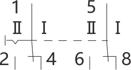 2. Quando a alça atinge a posição II: 1,5 e 4,8 estão conectados.