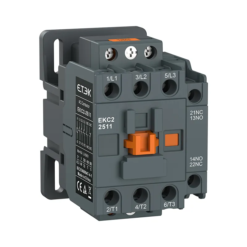 O contator CA da série EKC2 tem uma aparência inovadora e estrutura compacta. É usado para iniciar e controlar motores CA com frequência, conectar e interromper circuitos em longas distâncias e pode ser combinado com relés de sobrecarga térmica apropriados para formar um starter eletromagnético. É equipado com contato auxiliar 1NO+1NC.