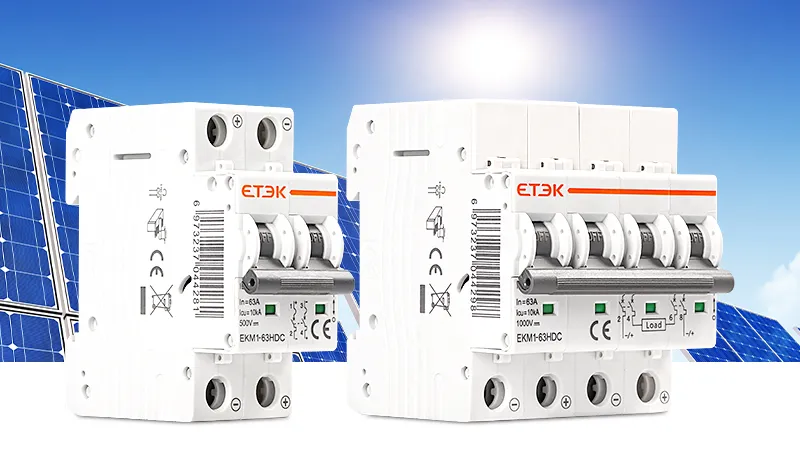 Série EKM1-63DC MCB a tensão de trabalho nominal dos disjuntores CC especialmente usados em fotovoltaicos pode ser tão alta quanto CC 1000 V. O sistema especial de extinção de arco e limitação de corrente pode desconectar rapidamente a corrente de falha do sistema de distribuição de energia CC. O módulo fotovoltaico, um componente importante no sistema de energia solar, pode evitar danos de alta corrente reversa CC e corrente de feedback CA causada pela falha do inversor, garantindo uma operação confiável do sistema solar fotovoltaico.