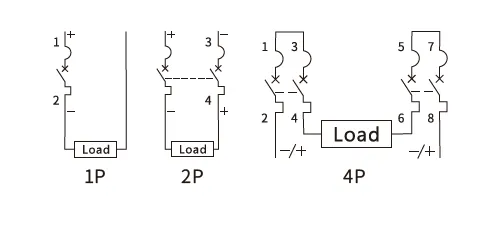 ● Tensão nominal: 1P(250VDC), 2P(500VDC), 4P(1000VDC)