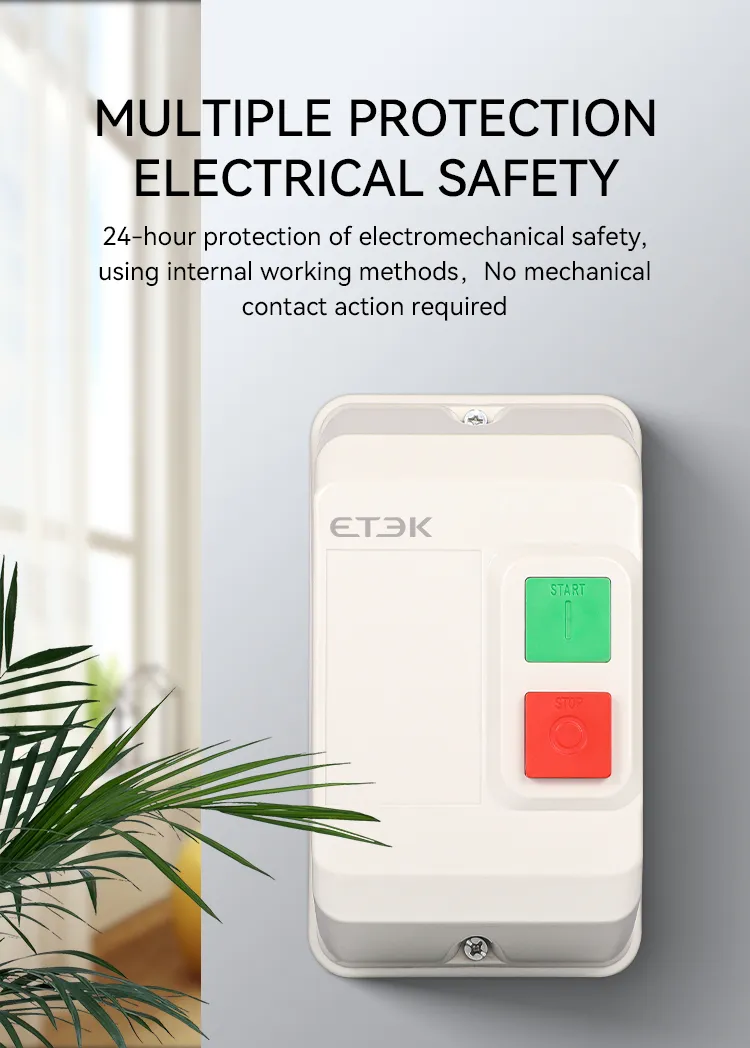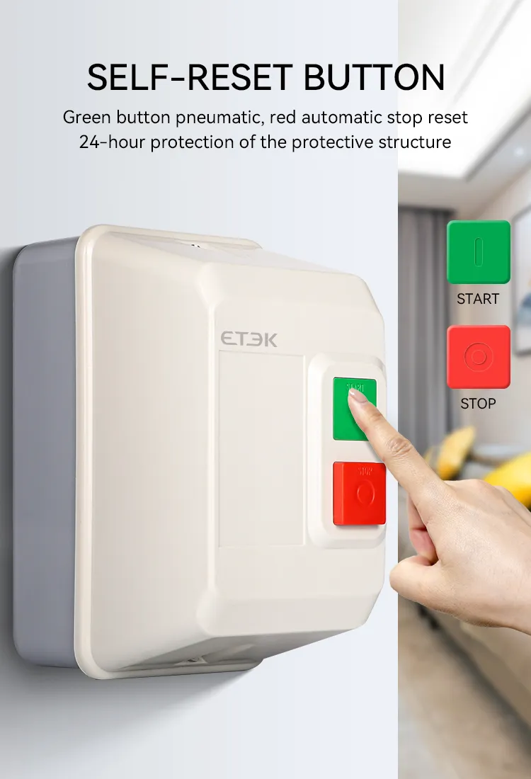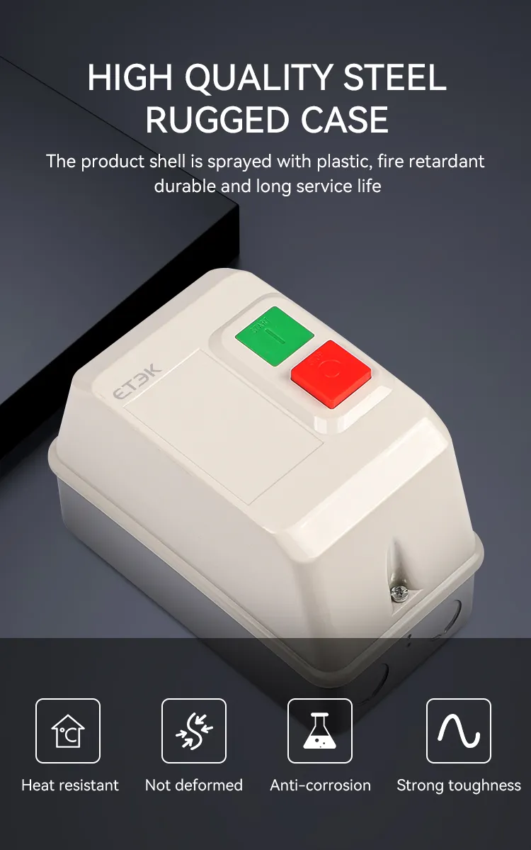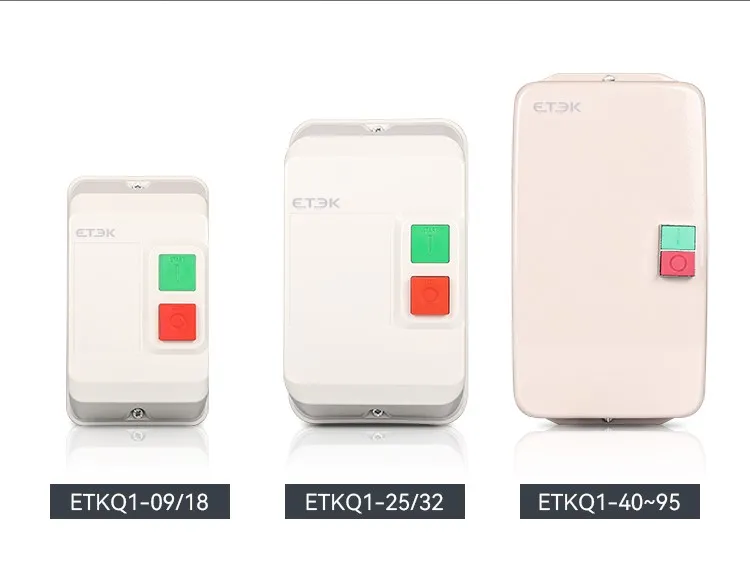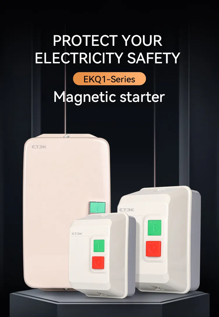 O starter eletromagnético série EKQ1 (doravante "starter") é usado para controlar a abertura ou fechamento do contator por meio de uma combinação de sinal externo e relé térmico e instalado na mesma caixa de metal, os sinais do interruptor externo são controlados de acordo com o dispositivo de contato conectado e os pontos a serem abertos, aplicando-se principalmente a circuitos com corrente CA de 50 Hz (ou 60 Hz), tensão operacional nominal de 660 V e potência nominal controlada de até 45 kW (corrente de até 95 A) para uso no controle da partida e parada direta do motor elétrico para proteger o motor contra sobrecarga e falha de fase.