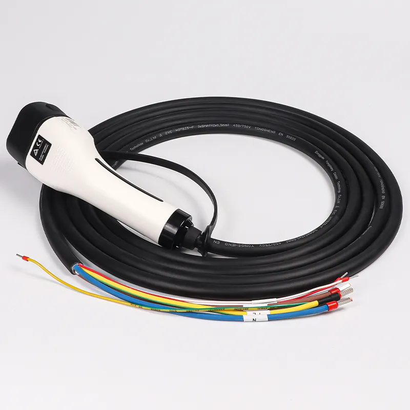 Plugue fêmea tipo 2 com cabo de carregamento, é um plugue de extremidade fêmea tipo 2 para conectar diretamente no veículo de carregamento, adequado para usuários que gostam de fazer suas próprias pilhas de carregamento ou fabricante de pilhas de carregamento, os produtos atendem aos padrões de conector de carregamento IEC 62196-2. São principalmente duas opções de corrente de 16A e 32A, que são divididas em versão monofásica e trifásica e têm como padrão um cabo reto preto de 5m.