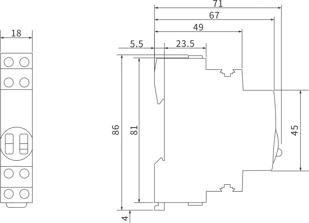 16A Faca única e contacto duplo 1P 1Módulo 48VAC/24VDC |