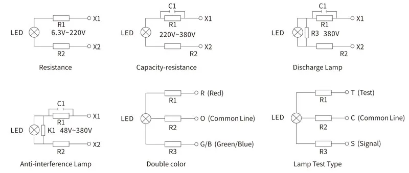 Indicador LED Teste de lâmpada Tipo 22mm Vermelho 380VAC |