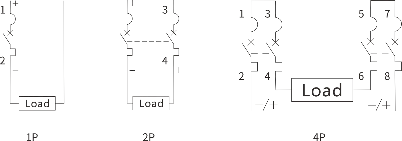 ● Tensão nominal: 1P(250VDC), 2P(500VDC), 4P(1000VDC)
