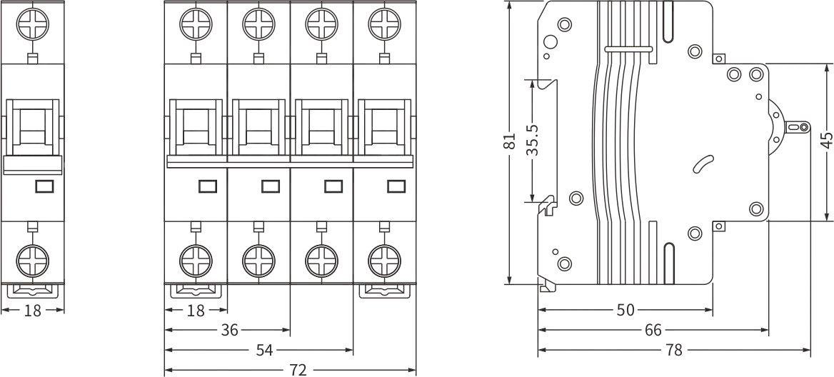 ● Número de pólos: 1P,2P,3P,4P,1P+N,3P+N