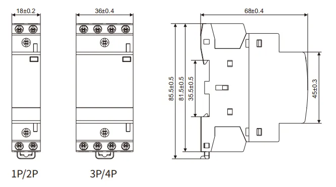 400V, 3P(3NO,3NC),4P(4NO,4NC,2NO+2NC,3NO+1NC)
