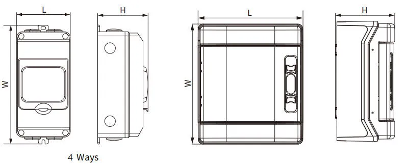 O gabinete de caixa CA para montagem em parede de superfície EKDB4 tem dois modelos: com terminal neutro e sem terminal neutro.