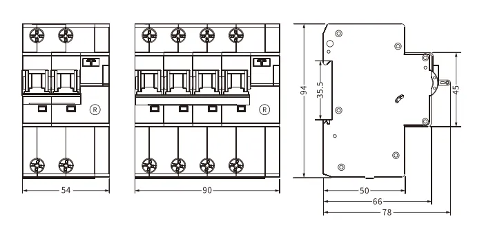 ● Número de pólos: 2P(1P+N), 4P(3P+N)