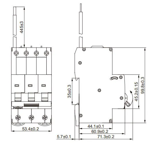 Nº de postes | 3P+N, compacto 3 módulos 54mm largura | ||