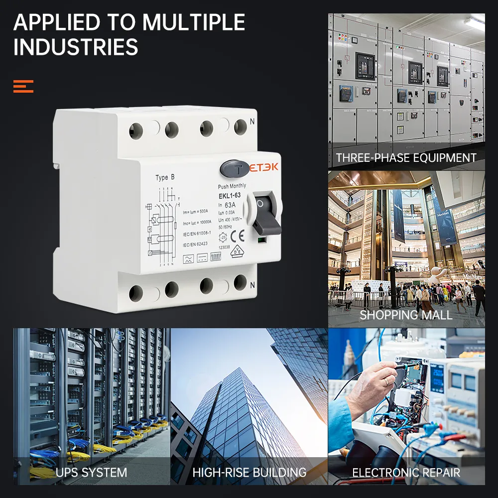 O RCCB EKL1-63B Tipo B representa o compromisso da ETEK Electric em atender às necessidades em evolução dos sistemas elétricos modernos. À medida que o uso de equipamentos produtores de CC e dispositivos de alta frequência se torna mais prevalente, a necessidade de proteção abrangente contra vários tipos de correntes residuais nunca foi tão crítica. Este RCCB preenche essa necessidade ao fornecer um nível de proteção que os RCCBs padrão não conseguem igualar.