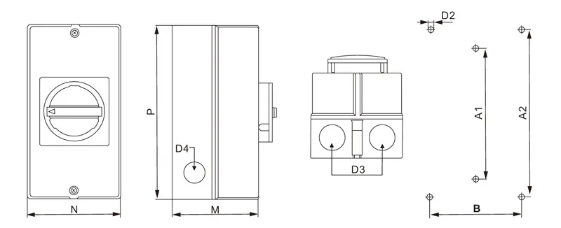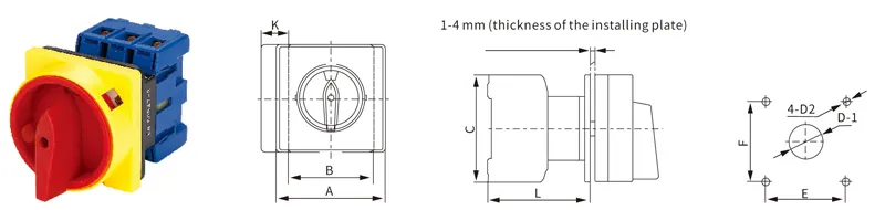 Interruptor de isolamento 3P 25A Painel de cor prateado 64*64mm |