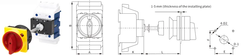 Interruptor de isolamento 3P 80A Mount de cordão vermelho PL64 com eixo 300mm |