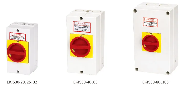 ● Os interruptores da série EKIS30 têm maior distância de isolamento, resposta de desconexão rápida. E é uma boa escolha. Para circuitos CC, o EKIS30 tem contato adicional que nos permite instalar o contato separadamente.