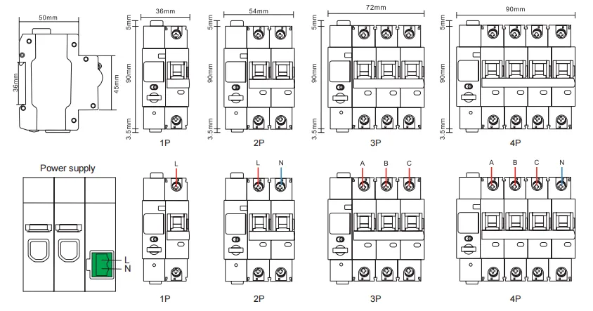 O disjuntor inteligente monofásico pode monitorar parâmetros de energia e parâmetros de energia em tempo real.
