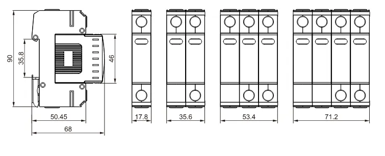| Nº de postes | 1P | 2P | 3P | 4P | 1P+NPE | 3P+NPE |