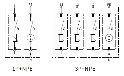 | Modo de proteção | L-PE, N-PE (apenas TN-S), L-PEN, LN | L-PE, N-PE | L-PEN | L-PE, N-PE | LN, N-PE | |