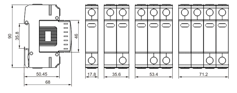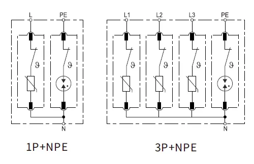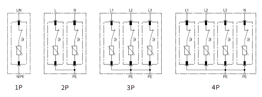 | Nº de postes | 1P | 2P | 3P | 4P | 1P+NPE | 3P+NPE |